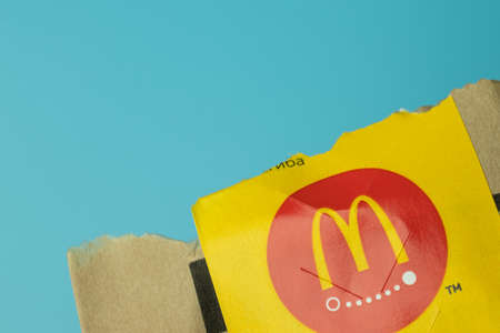 Moscow, Russia - 1 June 2020: McDonalds logo close-up with copy space, Illustrative Editorial.