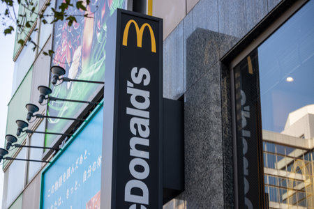 Tokyo, Japan, November 2, 2023: McDonald's restaurant sign against urban backdrop
