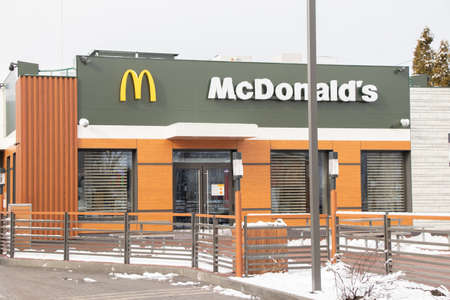 Ukraine Dnipro 08.03.2021 - a new building of McDonald's in a residential area of the city of Dnipro in winter
