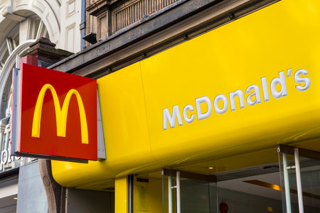 LONDON, UK - FEBRUARY 16TH 2018: The logo of the McDonalds restaurant located on Oxford Street in London, on 16th February 2018.