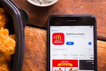 Stavropol, Russian Federation. June 10, 2019. Smartphone with mobile application McDelivery Korea