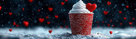 A charming dessert cup filled with creamy swirls, adorned by a heart, perfect for Valentine's Day celebrations. Ideal for romantic events and festive occasions.