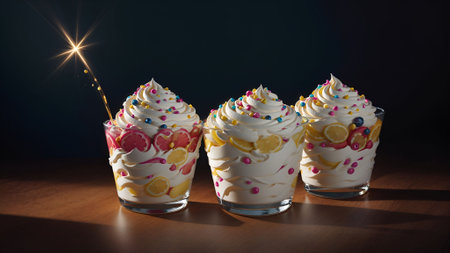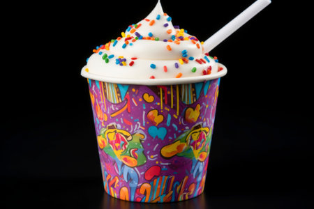 Colorful Sprinkles on Swirled Frozen Yogurt Against Abstract Background.