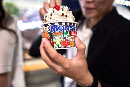Samut Prakan, Thailand - May 26, 2021 : The new magnum mini cup of Magnum Classic ice cream one of the ice cream brands of Unilever Group, the world's largest ice cream maker.