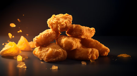 Close-up of chicken nuggets Fast food in batter. Meal preparation restaurants and cafes. Classic American cuisine concept.