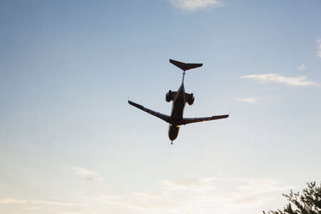 Private jet flying at Centennial airport near Denver, Colorado. This airport is one of the busiest general aviation airports in the United States.