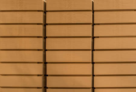 Pack of MDF laid in rows on the warehouse.