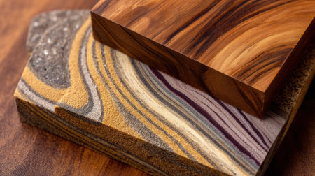 This image showcases a collection of wooden and stone materials with diverse textures and colors, perfect for inspiring design ideas for home decor and projects.