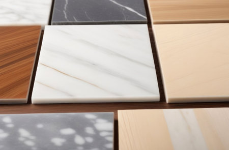 Explore the beauty of minimalist elegance with this collection of stunning marble and wood-textured tiles. Discover the perfect blend of classic and modern design. Generated AI.