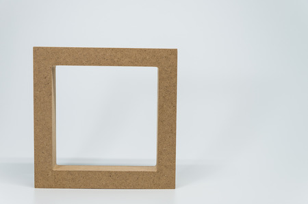 Wooden frame border with white background and selective focus