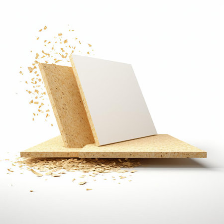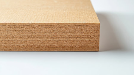 particle board design sits elegantly on a simple white background, showcasing a minimalist illustration that highlights the beauty of this engineered wood product, perfect for furniture making, diy projects, and home decor, emphasizing its versatility and eco-friendly features. ai generated
