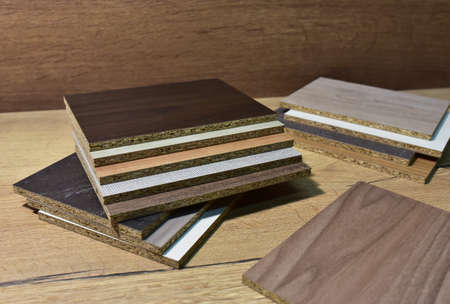 Laminate background. Samples of MDF for flooring and interior design. Production of furniture.