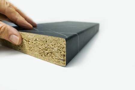 Detail of melamine kitchen worktop on a white