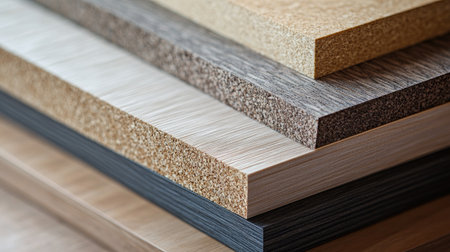 A collection of laminated wood panels showcasing various textures and colors, ideal for interior design, furniture crafting, and home renovation projects.