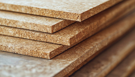 Cork sheets are stacked, creating an interesting staircase-like pattern with their natural texture