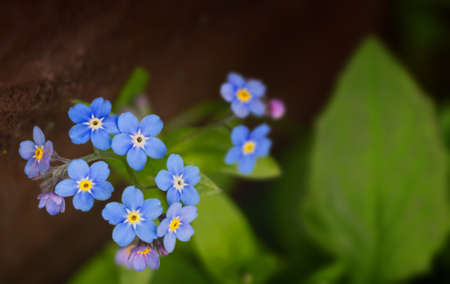 spring flowers of a forget-me-not with green leaves