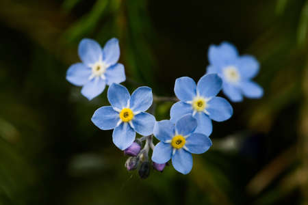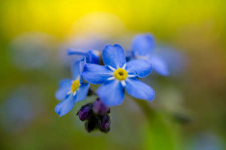 Forget me not Myosotis small flowers macro, selective focus, shallow DOF.