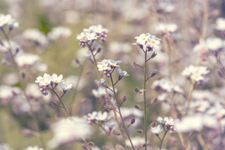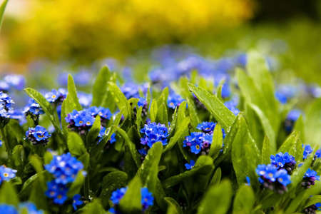 Small, flowering forget-me-not flowers in spring in the garden
