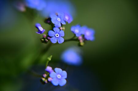 Beautiful blue forget-me-not flowers close up macro photography