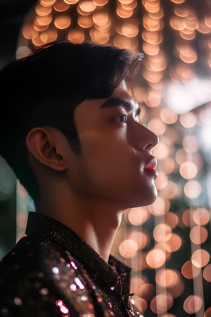Portrait of a young handsome asian man in a night club