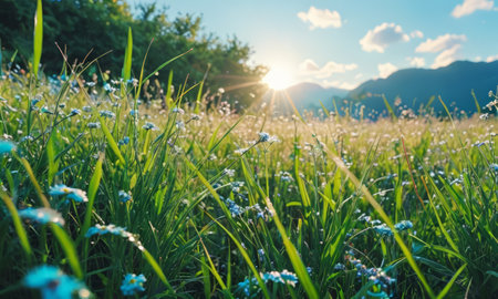 A meadow wildflower grass summer sunrise nature landscape morning sunlight field meadow wildflower grass summer sunrise nature landscape morning sunlight field gentle glow, soft focus flower bloom