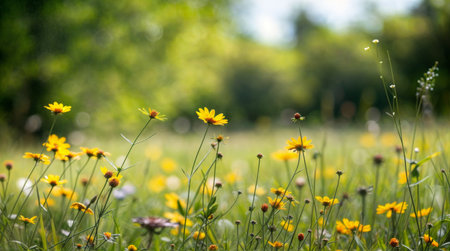 Vibrant wildflowers bloom in a tranquil meadow under summer sunlight. generated by artificial intelligence