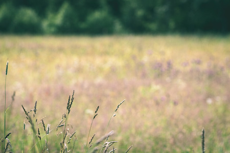 blurred background. summer meadow with yellow flowers. filtered in retro style
