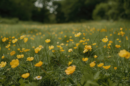 Buttercups scattered in a meadow AI generated