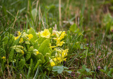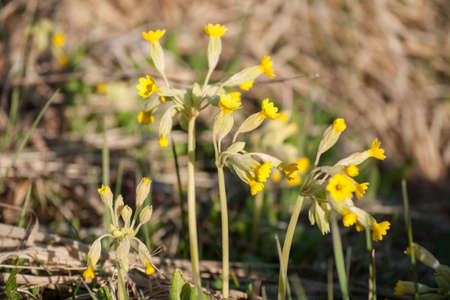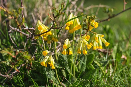 Medicinal plants in early spring- yellow cowslips Primula veris