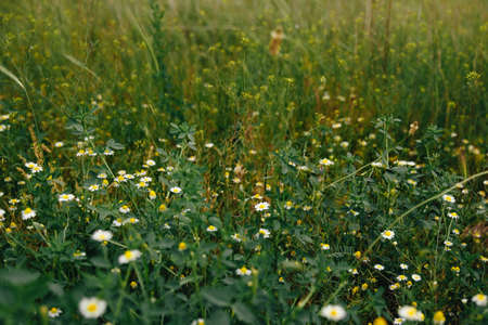 Wildflowers on a summer meadow. Unfocused abstract floral background