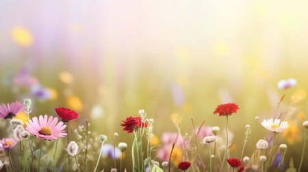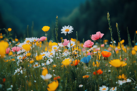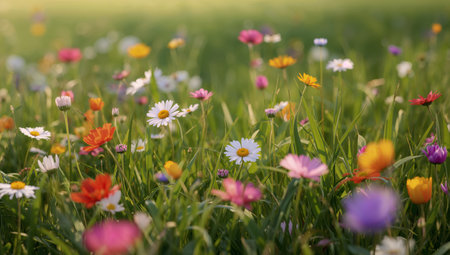 Dreamlike meadow with colorful wildflowers and verdant grass