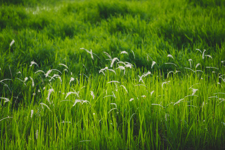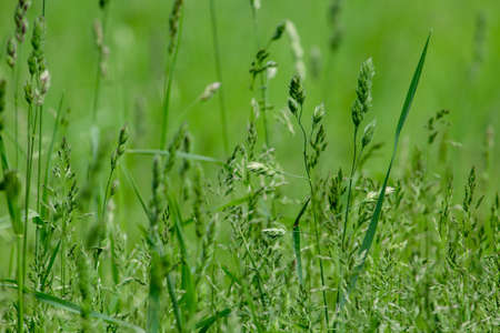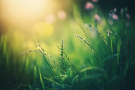 blooming grass in the meadow green grass landscape close up spring meadow background country scene view of fresh bright spring green grass detail