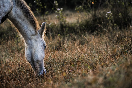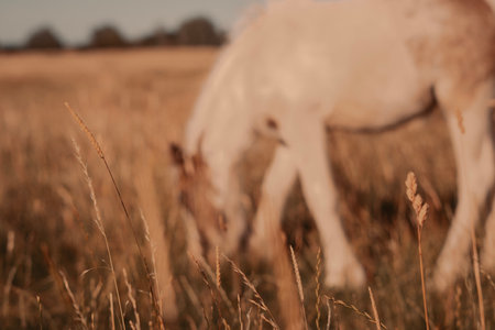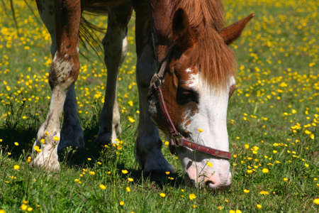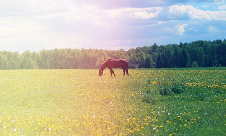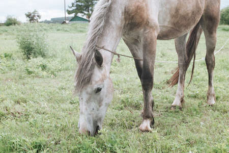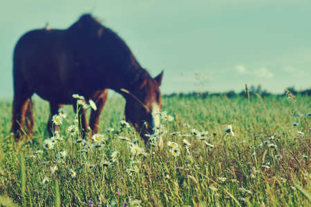 Grazing horse.Belarusian countryside. Shallow depth-of-field