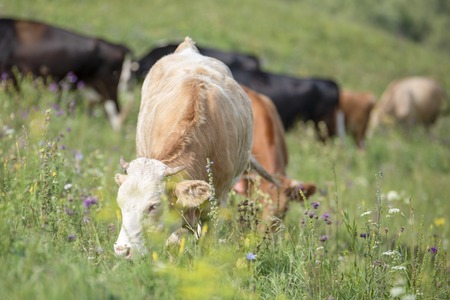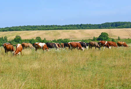 cattle grazing in the meadow. Pets: cows, goats, sheep