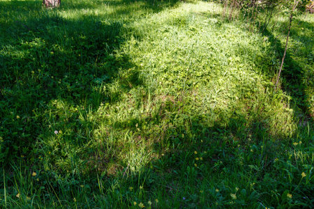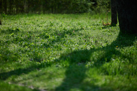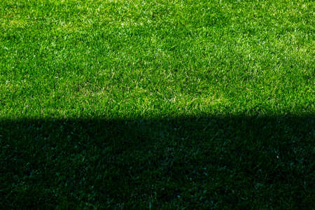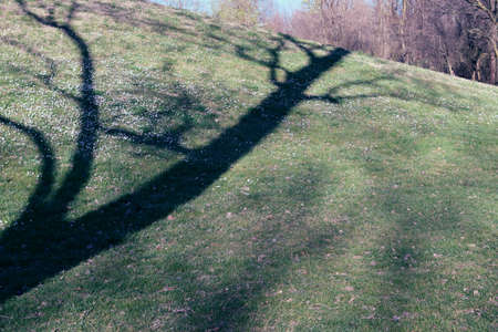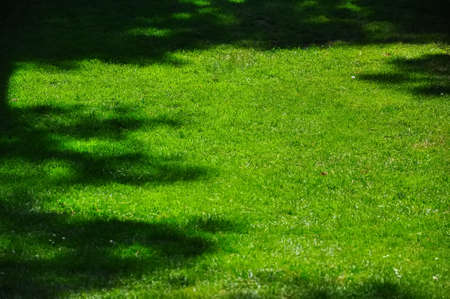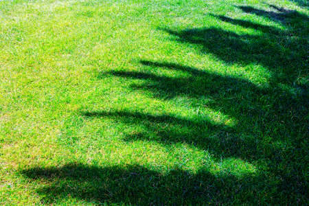 Shadow of tree on green grass field in the garden. Nature background