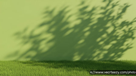 3D rendering of green grass with shadow of tree on the wall