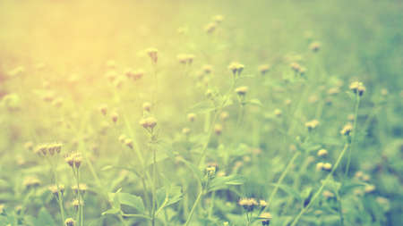 selective focus of flowers in the field with sun light effect, vintage toning color