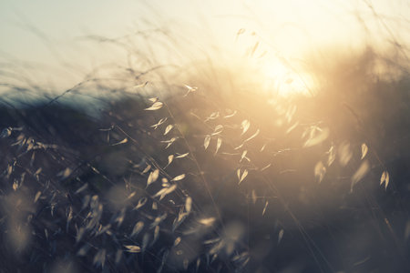 fresh field grass against and sunlight with retro filtered