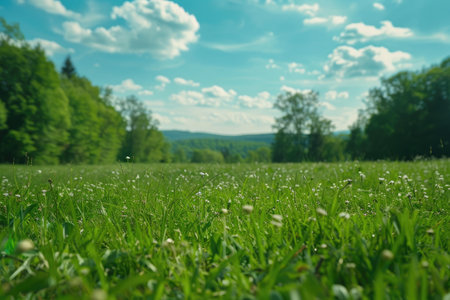 peaceful meadow with birdsong and gentle breeze, created with generative ai