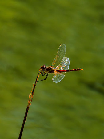 Dragonfly sitting on the stem of the plant.This insect lives near water bodies.
