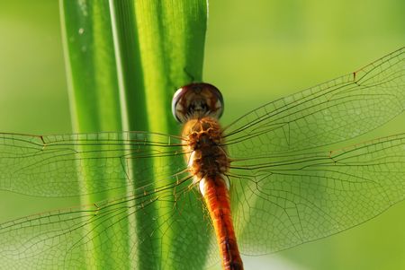 Red Dragon Fly with transparent orange wings Makro Namibia Africa