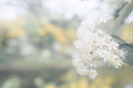 Little white flowers in the garden, soft focus background, vintage tone