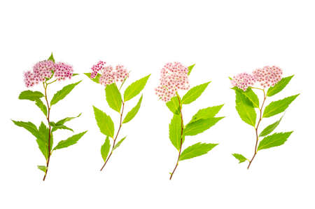 Spiraea japonica branch with pink inflorescence. Studio Photo