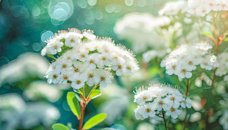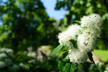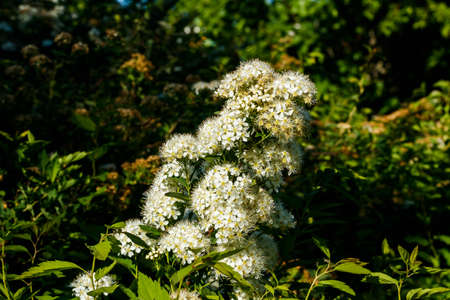 spirea flowers white sunny summer day in the garden