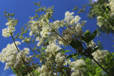 White flowers Common meadowsweet or common Laburnum in summer