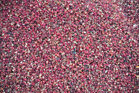 Cranberry background, berry texture. A lot of cranberries are scattered on the table.