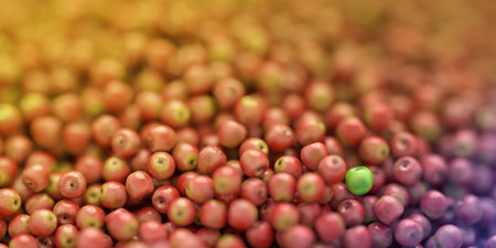 Red lingonberries picked from bushes in the forest, after cleaning, less ripe lingonberries lying next to each other - as a background.
