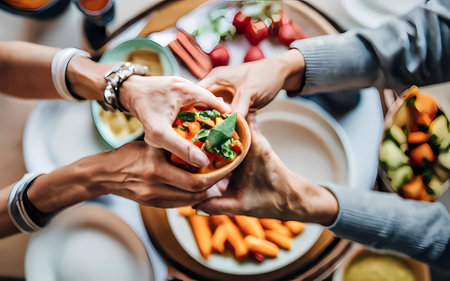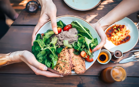 AI Generation. Close up of hands handling food