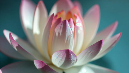 Close-up of a blooming lotus flower in vibrant light symbolizing peace, spirituality, growth, and inner transformation in wellness and mindfulness themes.