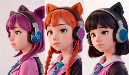 Pop art girl with headphones. Set of avatars. Generative AI.